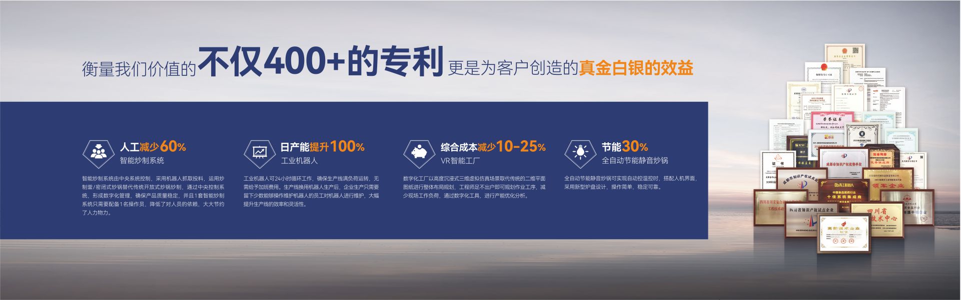 )是一家集研发、生产、销售、服务为一体,专注为中国传统食品行业提供自动化、智能化、数字化、智慧工厂整体解决方案的国家级高新技术企业。公司拥有标准化办公楼及现代化生产车间约42000m²,具有较强的综合研制、设计开发、生产能力,具备严格的质量管理体系和完善的售后服务体系。公司业务范围覆盖:复合调味品智能生产线、中式酱卤肉制品智能生产线、酱腌菜智能生产线、智慧餐厨、央厨预制菜调理智能生产线,与海底捞、天味、九毛九、聚慧、杨国福、绝味、双汇、新希望、无穷、乌江、吉香居、仲景、李记乐宝、Tyson、益海嘉里、开小灶、老乡鸡等众多知名企业合作。截止目前,星空app登录入口-星空(中国)